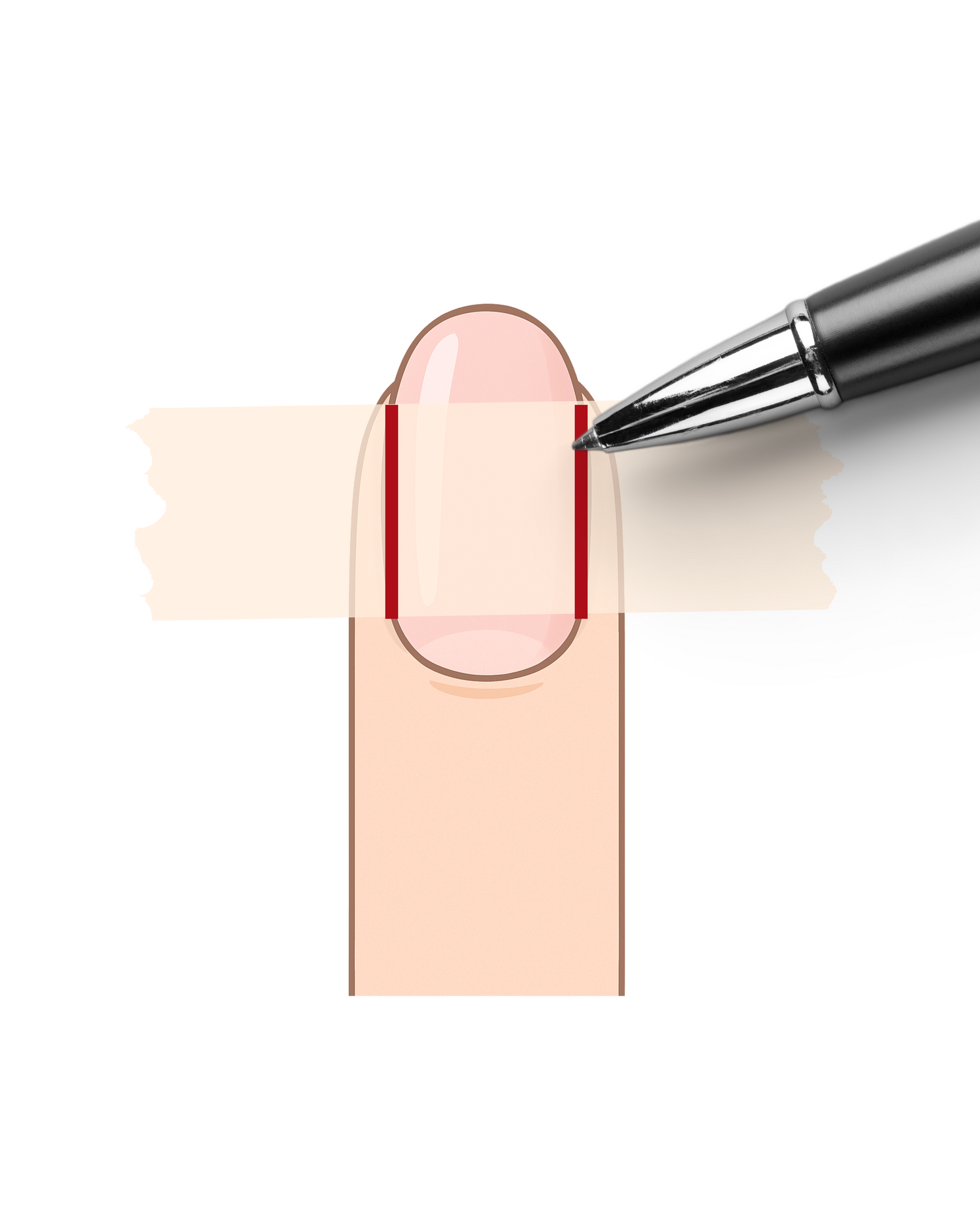 Use a pen to mark the widest points of your nail — side to side, where your nail curves the most.