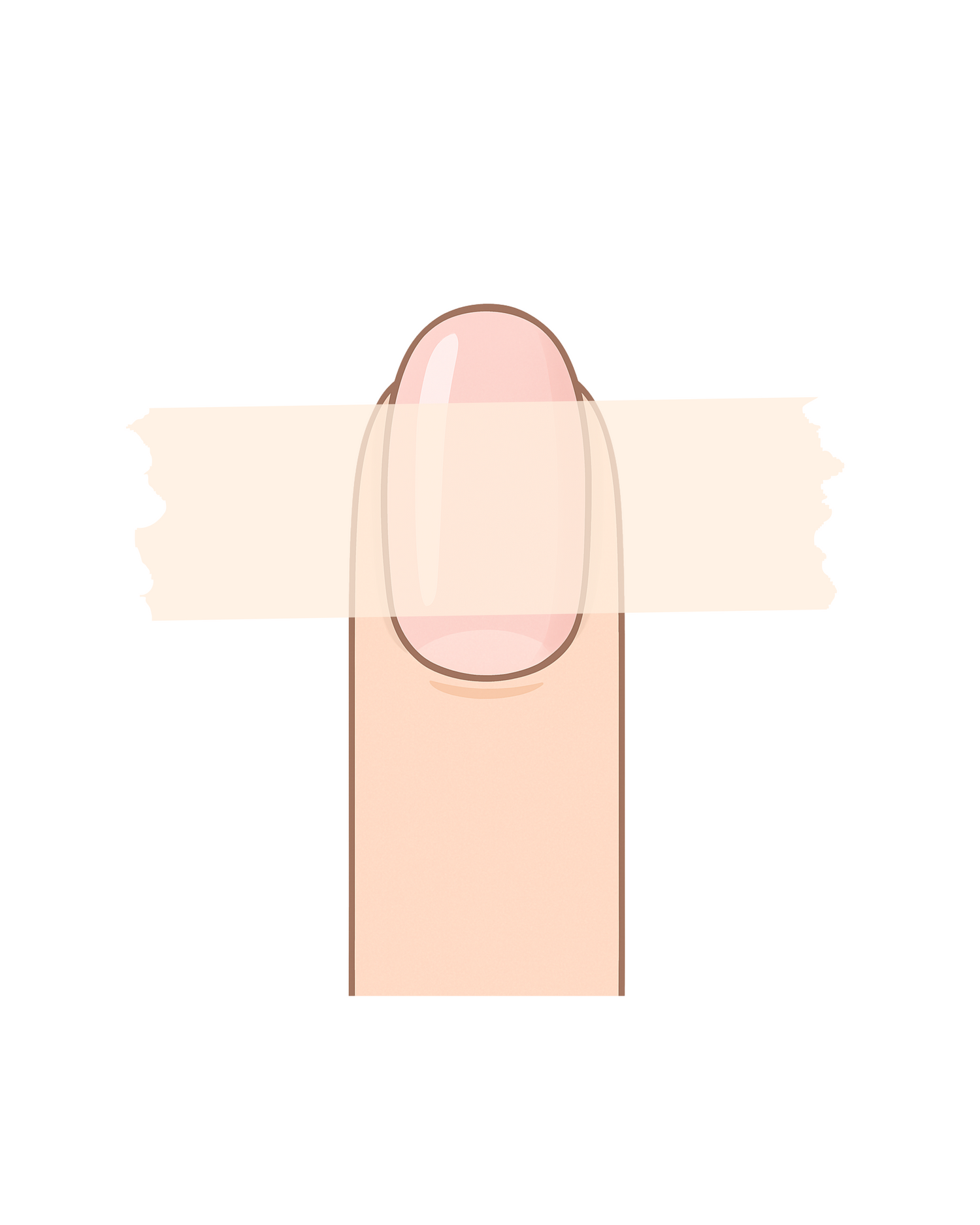 Take a piece of clear tape and gently place it across your natural nail (flat and snug!).